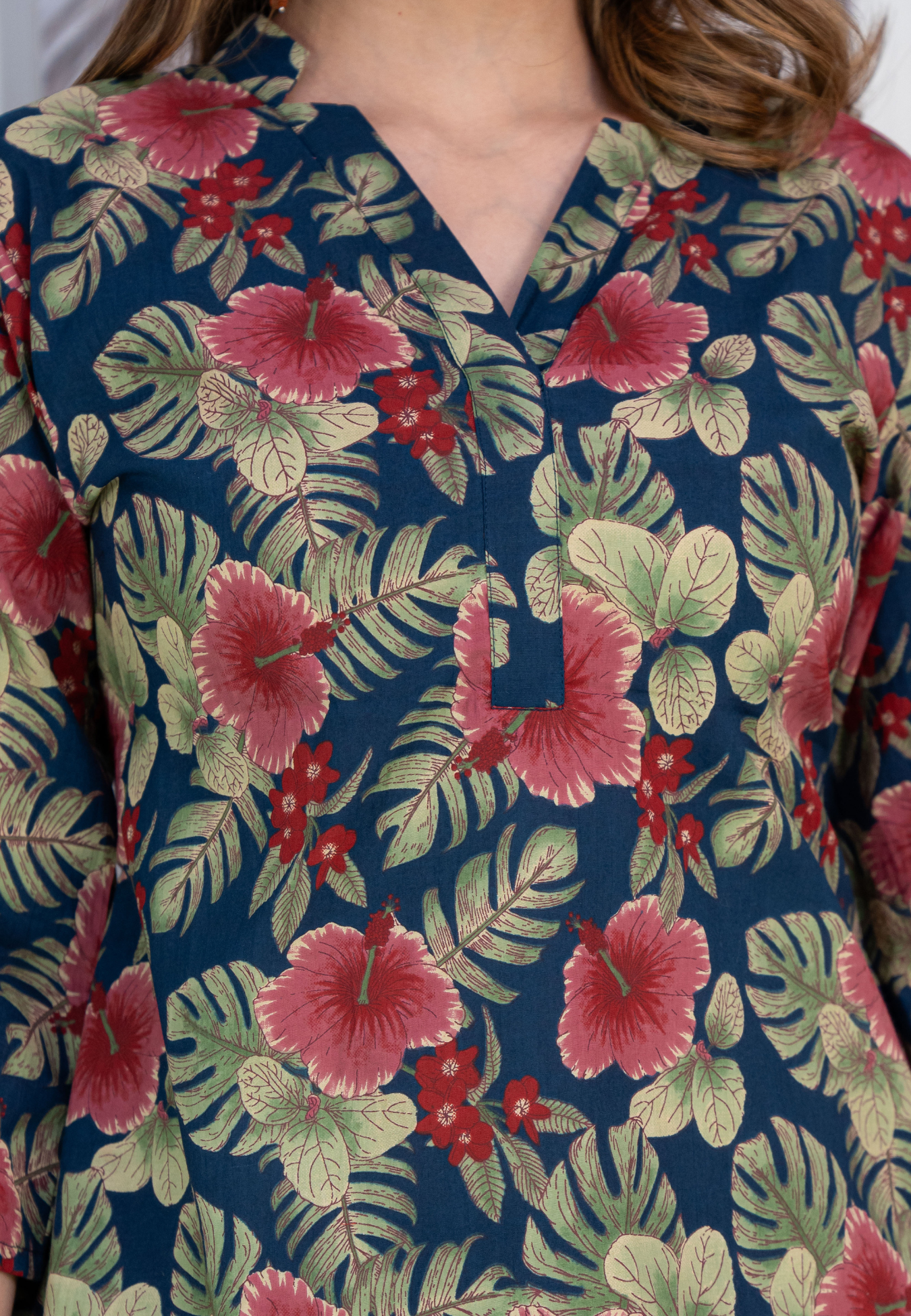 Refresh your everyday style with the Teal Hibiscus Cotton Co-ord Set, designed for effortless comfort and vibrant appeal. Crafted from breathable cotton and featuring bold hibiscus floral prints, this set offers a relaxed silhouette perfect for all-day wear. Ideal for casual outings, vacations, and easy day dressing.